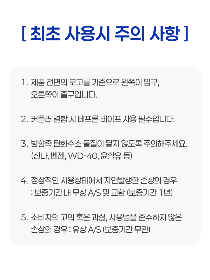 냉동식 드라이어가 없거나, 혹은 유입되는 에어의 온도가 상온 (25℃)보다 높을 경우에는 위와 같은 분리 성능을 보장하지 않습니다.